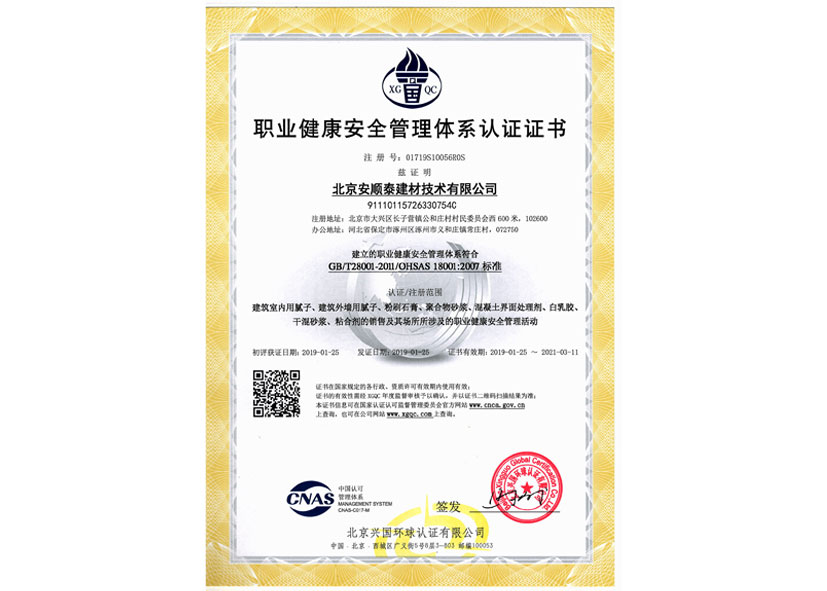 职业健康安全管理体系认证证书英文