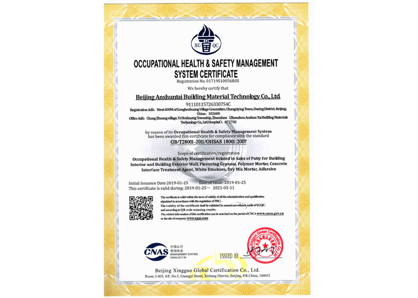 职业健康安全管理体系认证证书英文