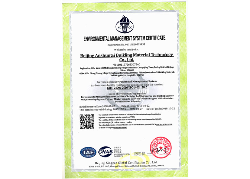 环境管理体系认证证书英文